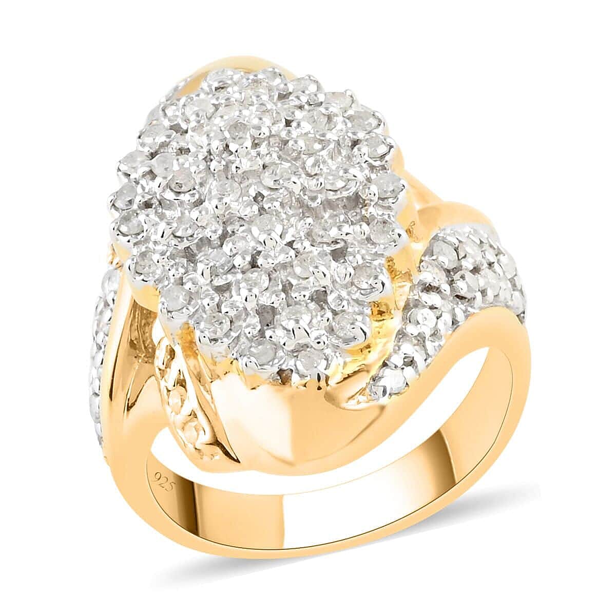 Diamond Cluster Ring in 14K Yellow Gold Over Sterling Silver (Size 10.0) 1.00 ctw