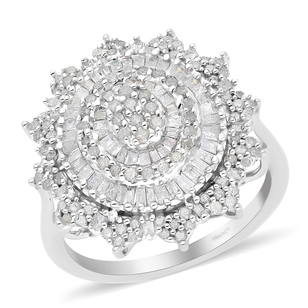 Diamond Cocktail Ring in Platinum Over Sterling Silver (Size 7.0) 1.00 ctw