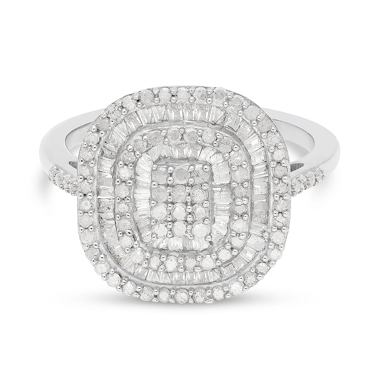Step out in style as you accentuate your casuals with this cushion-shaped diamond ring. The cushion-shaped forefront features sparkling round and baguette shaped diamonds. A great addition to your jewelry collection, this diamond ring will enhance your looks in no second.