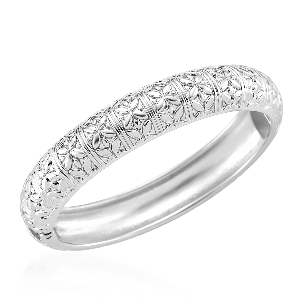 Diamond-cut Bangle Bracelet in Silvertone (6.75 In)