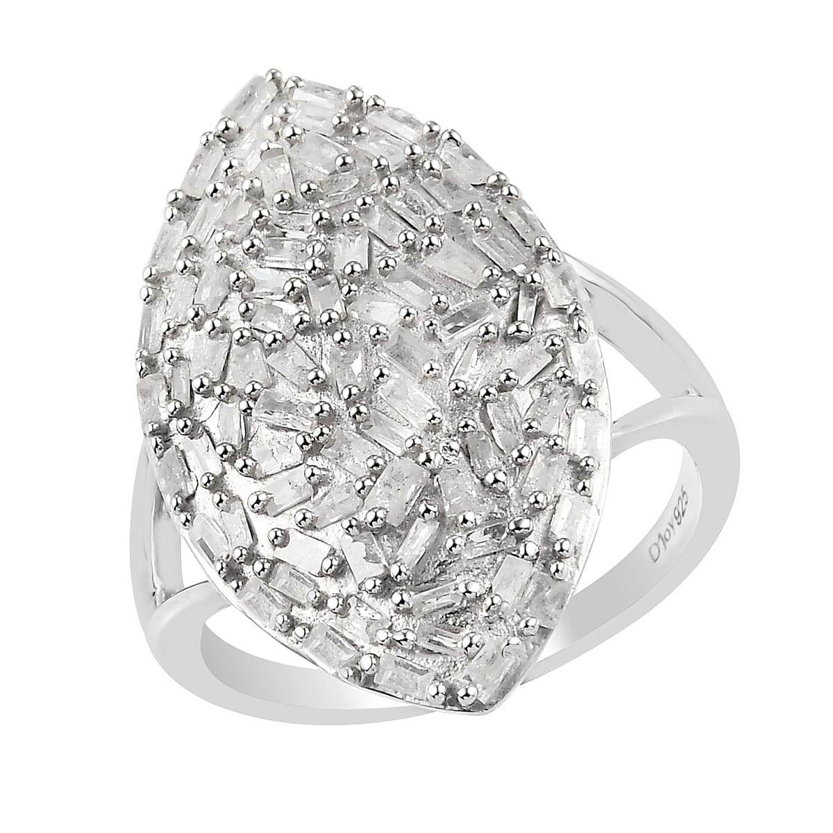 Diamond Elongated Ring in Platinum Over Sterling Silver (Size 7.0) 1.00 ctw
