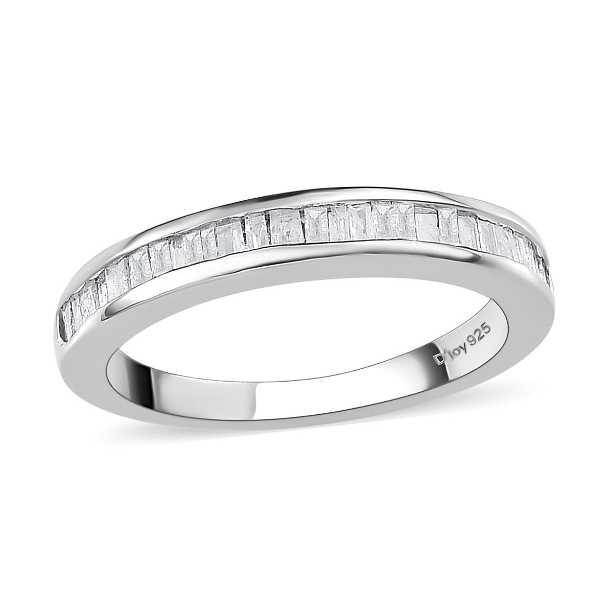 Capture the essence of enduring love and timeless style with our diamond half eternity band ring. Beautifully crafted with channel-set baguette diamonds in symmetric placement, this ring is a masterpiece of design and elegance. Set in platinum over sterling silver, it's a ring that doesn't just capture eyes—it captures hearts.