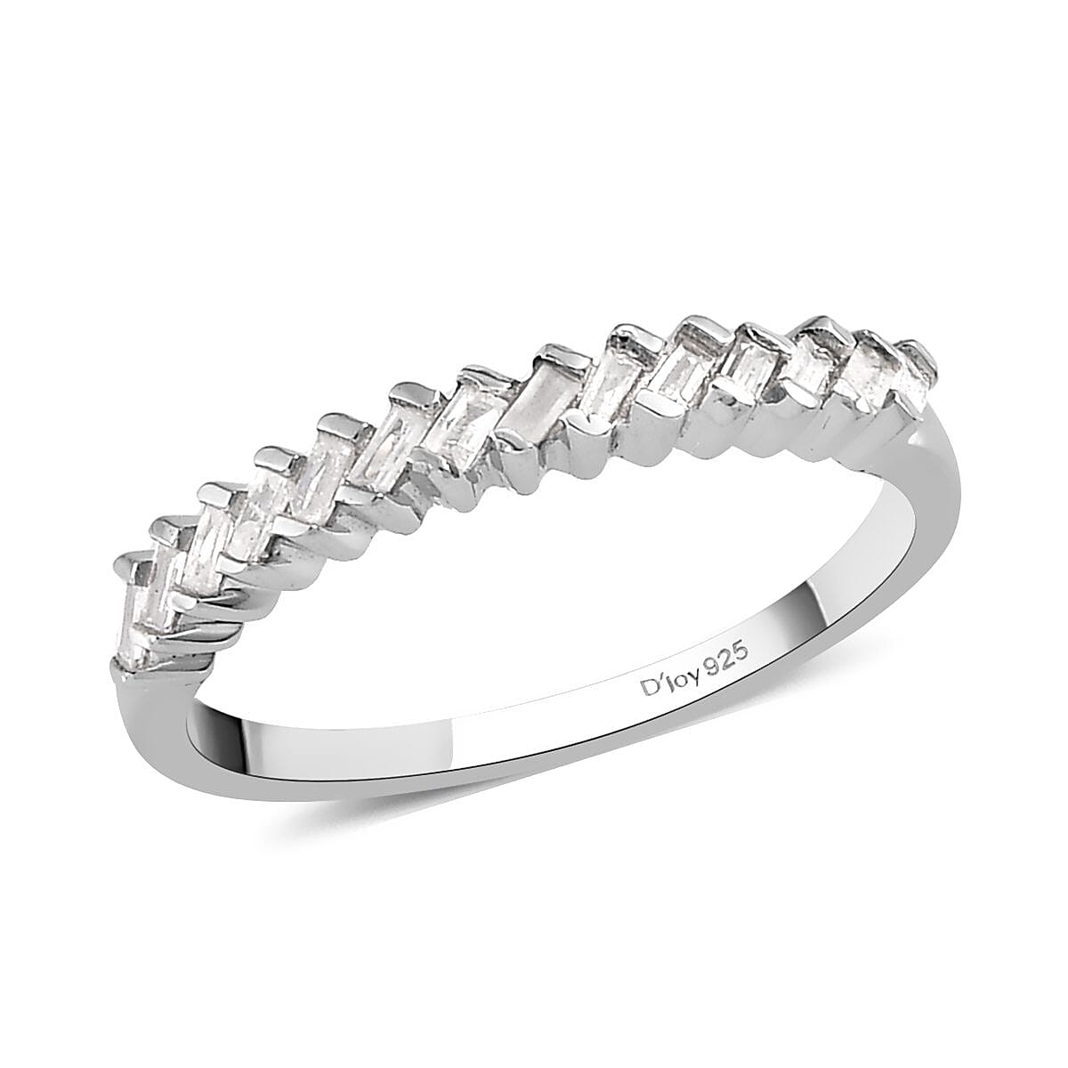 Inspired by eternity, this diamond band ring signifies everlasting love. This half-eternity band ring features baguette diamonds on the front side of the band. Each of these diamonds is placed at an angle giving a unique look to the jewelry. This sterling silver ring has a minimalistic look and suits every outfit.