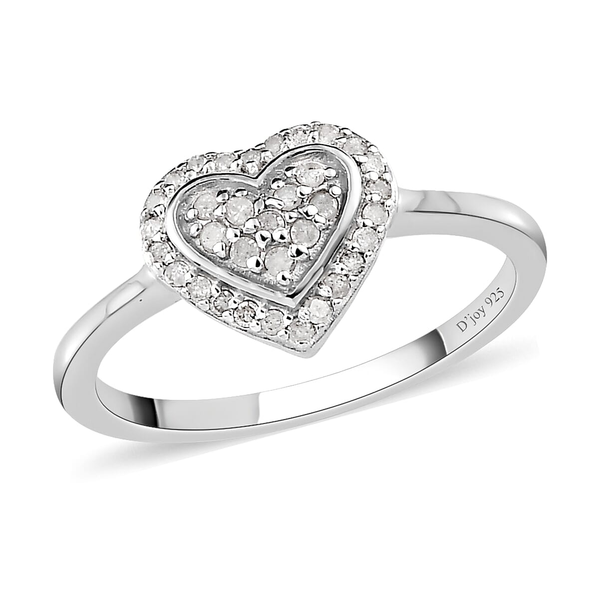 Inspired by a heart design, this diamond ring symbolizes love and affection. This diamond heart sterling silver ring features a cluster of round sparkling gems in the center. The double heart shape metal pattern displays the beauty of diamonds like no other. This beautiful ring for women is a token of love for someone special.
