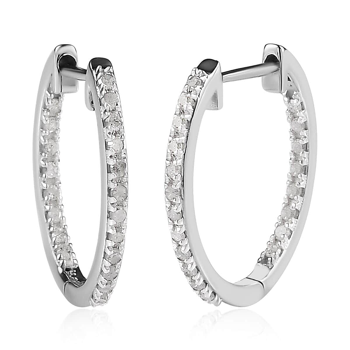 Diamond Hoop Earrings in Platinum Over Sterling Silver (Delivery in 10-12 Business Days) 0.50 ctw