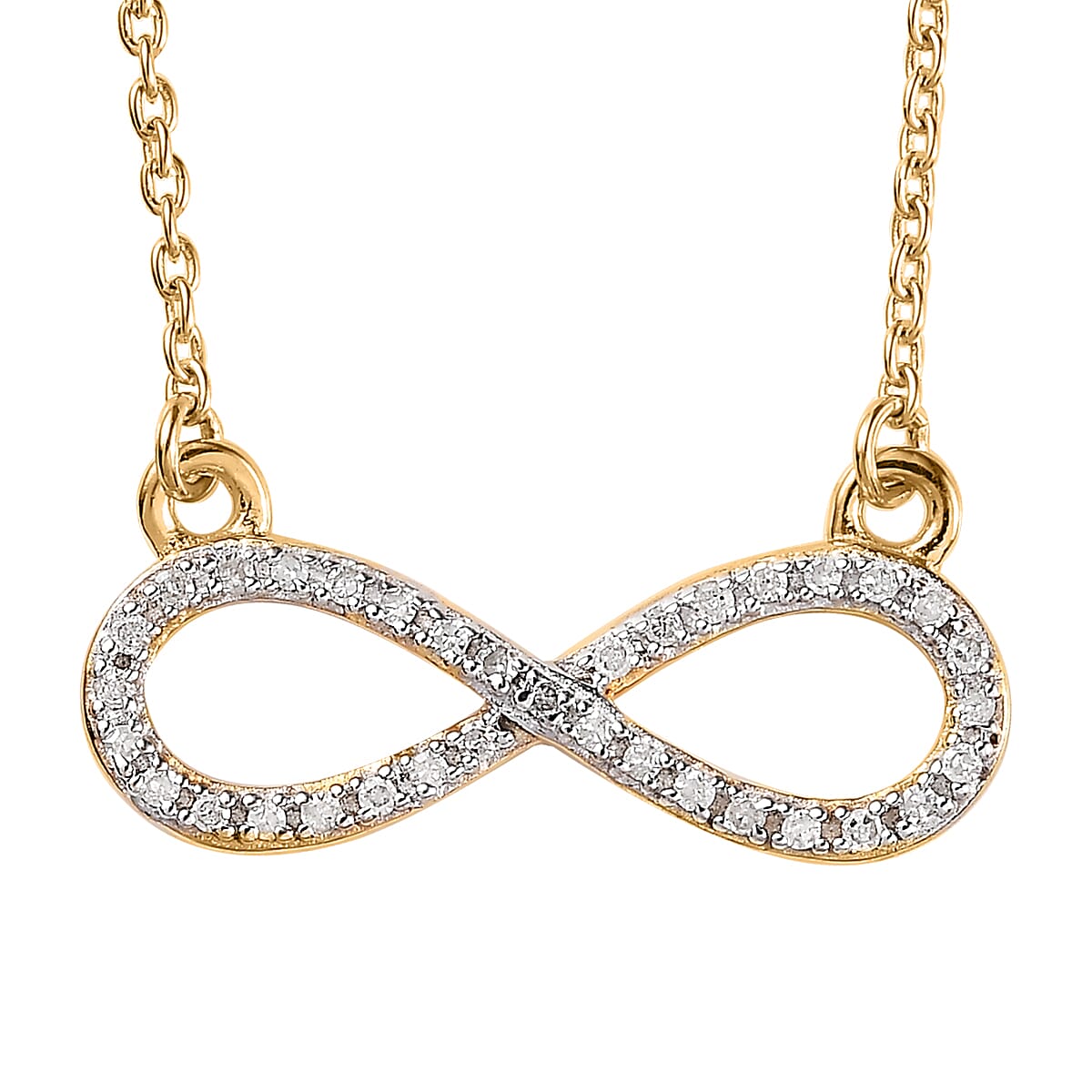 Diamond Infinity Necklace 18 Inches in 14K Yellow Gold Over Sterling Silver 0.15 ctw