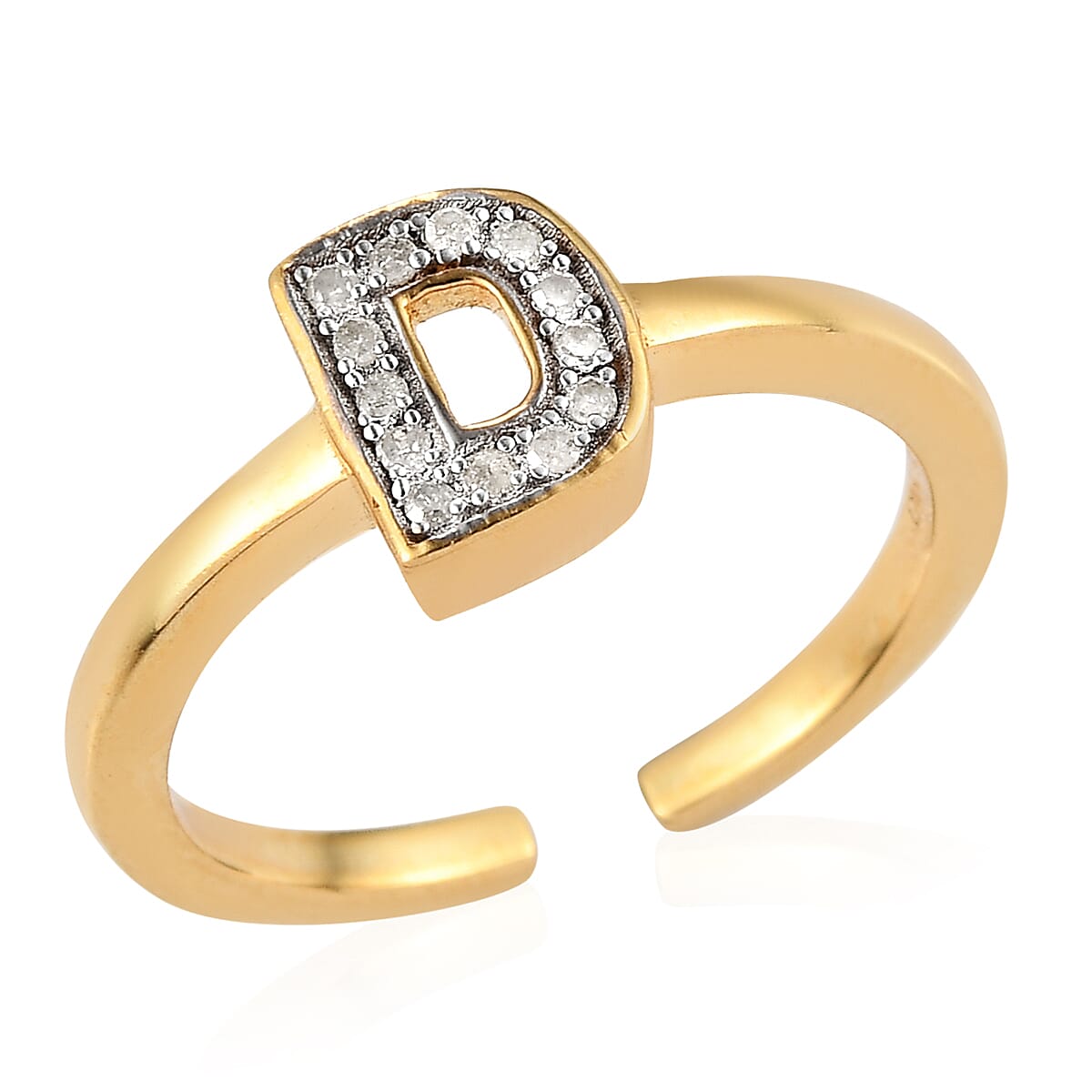 Diamond Initial D Openable Band Ring in Vermeil Yellow Gold Over Sterling Silver (Size 7.0) 0.08 ctw