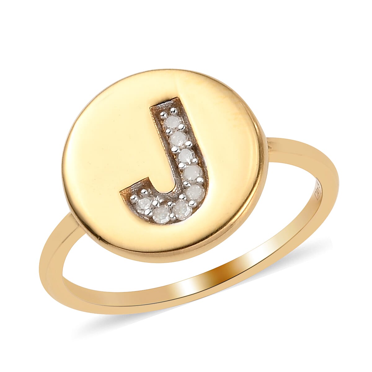 Diamond Initial J Ring in 14K Yellow Gold Over Sterling Silver (Size 8.0) 0.05 ctw