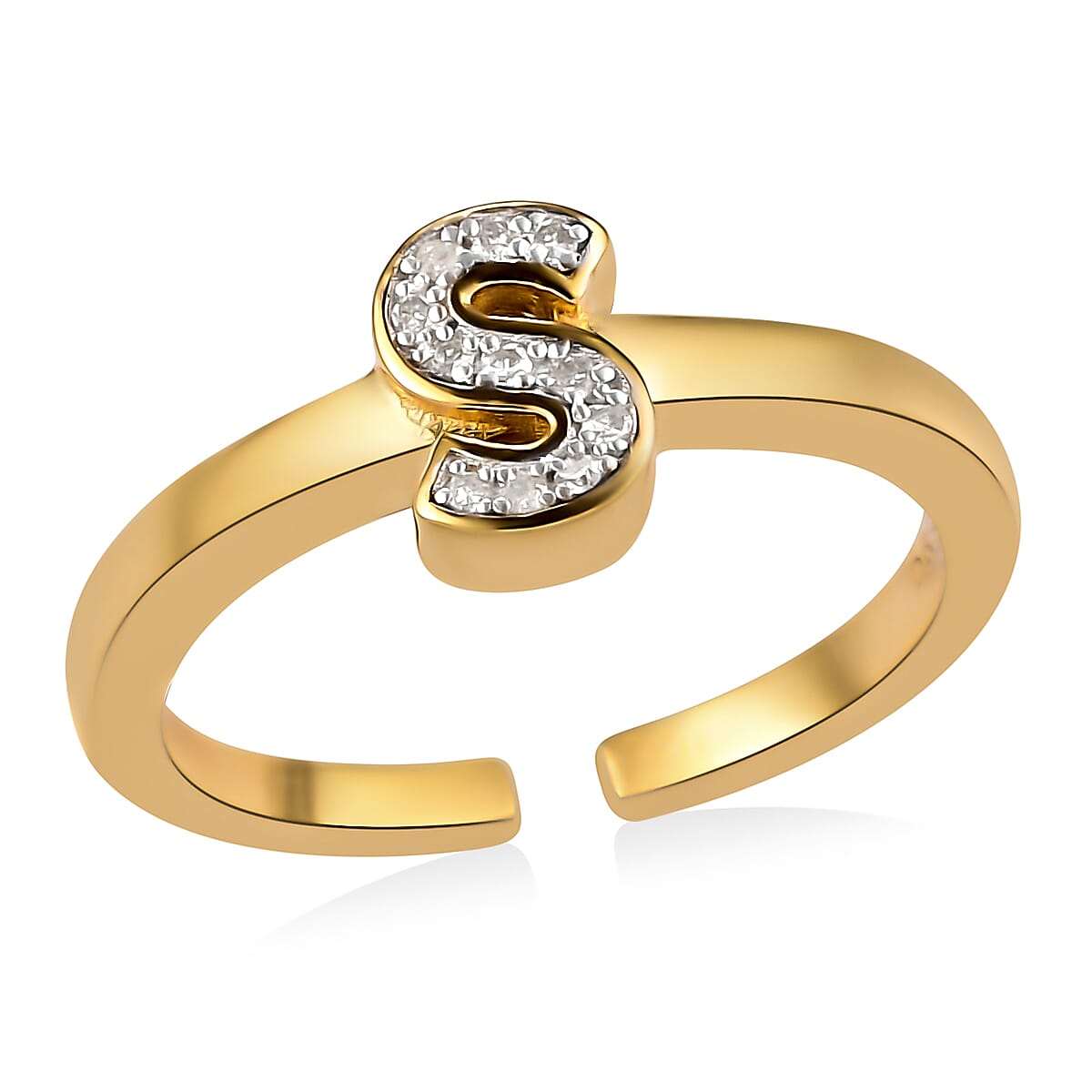 Diamond Initial S Open Band Ring in Vermeil Yellow Gold Over Sterling Silver (Size 7.0) 3 Grams 0.10 ctw