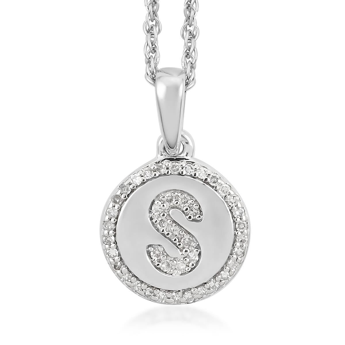 Diamond Initial S Pendant Necklace 20 Inches in Platinum Over Sterling Silver 0.15 ctw