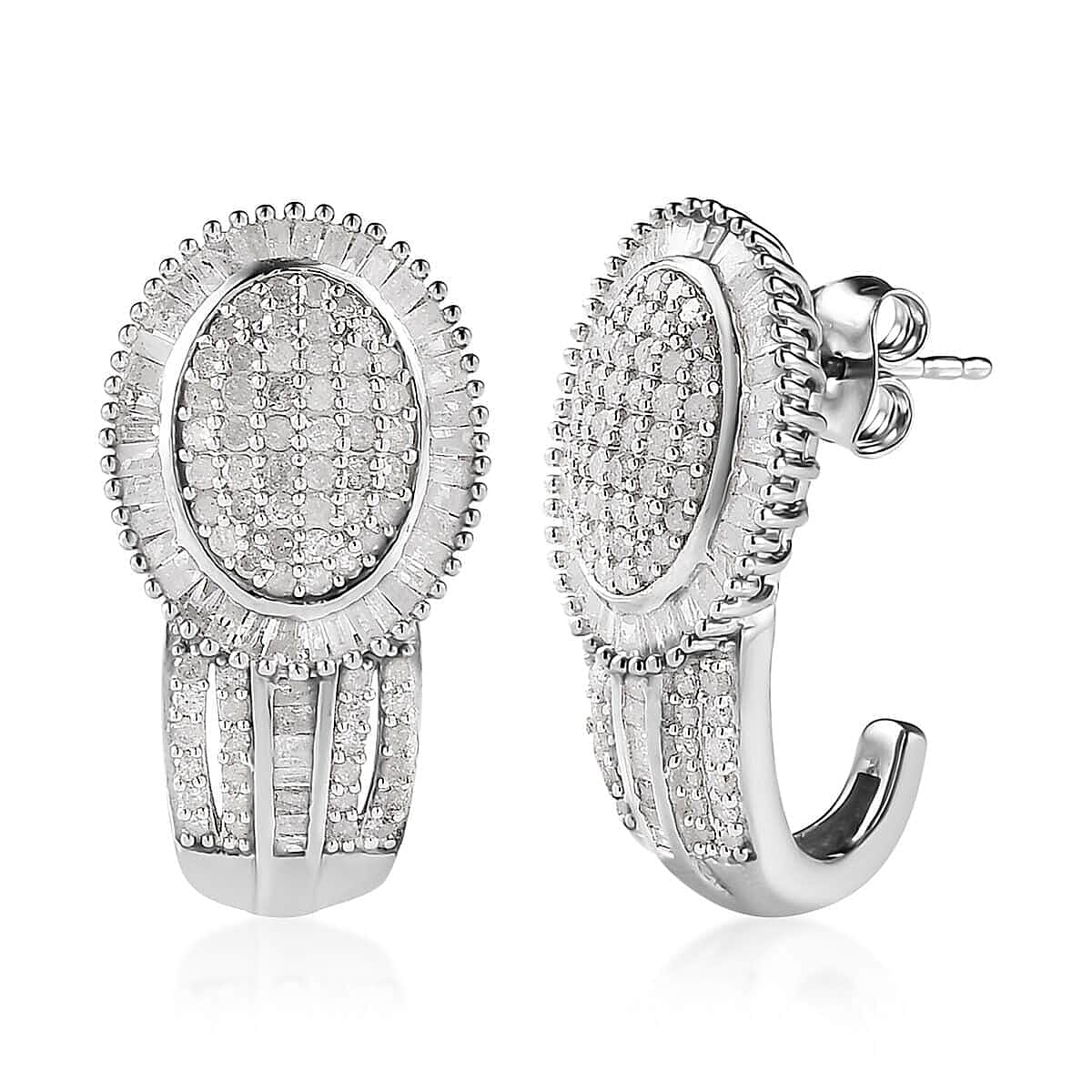 Diamond J-Hoop Earrings in Platinum Over Sterling Silver 7 Grams 2.00 ctw