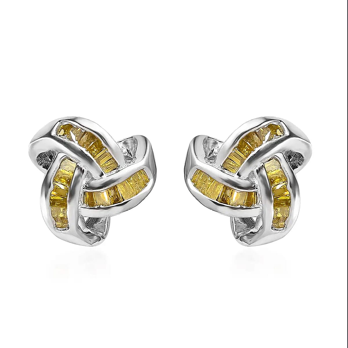Diamond Knot Stud Earrings in Platinum Over Sterling Silver 0.25 ctw