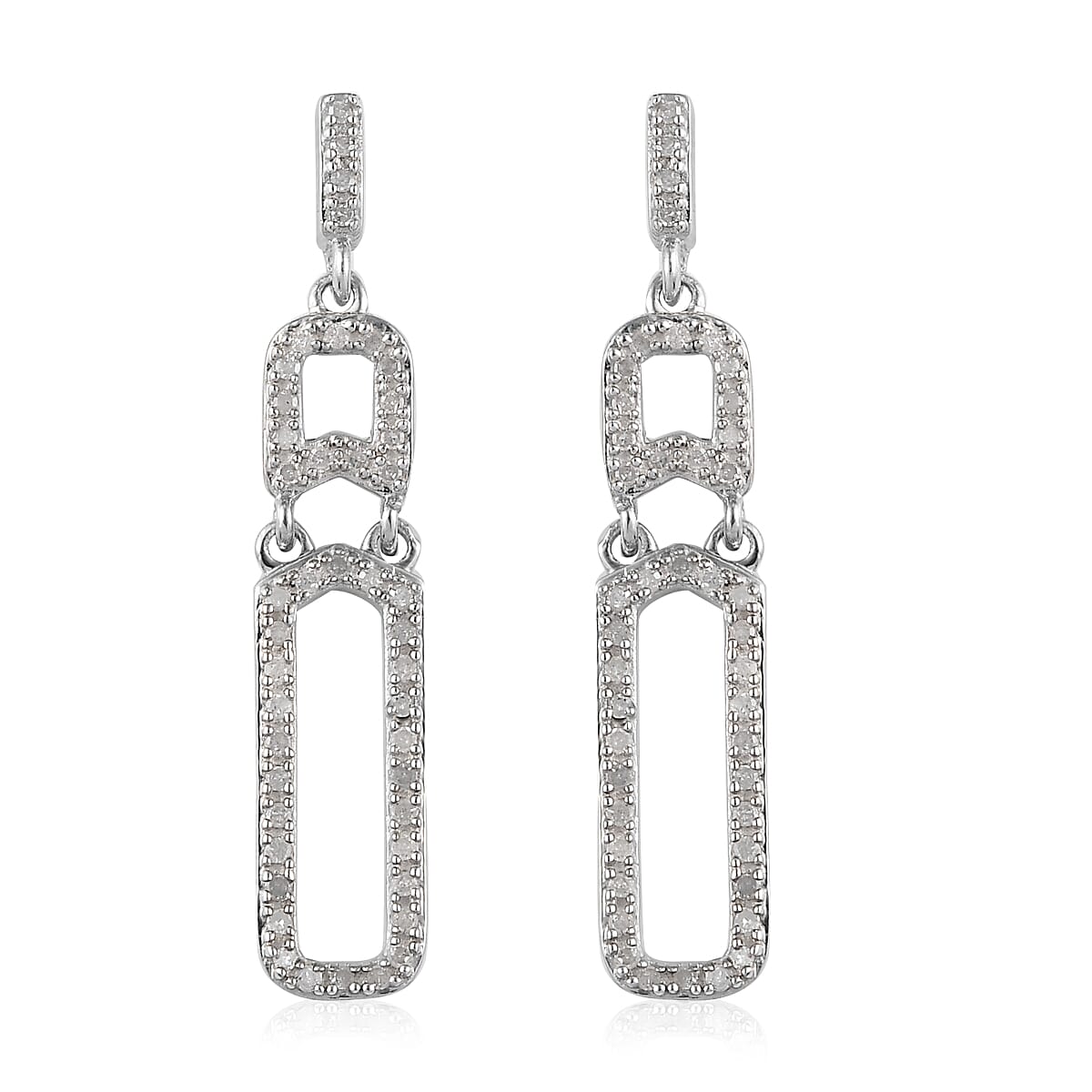 Diamond Paper Clip Earrings in Platinum Over Sterling Silver 0.50 ctw