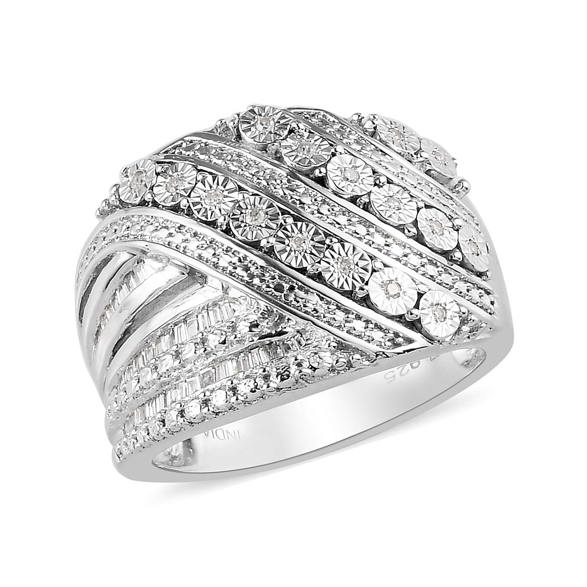 Diamond Ring in Platinum Over Sterling Silver (Size 7.0) 0.85 ctw