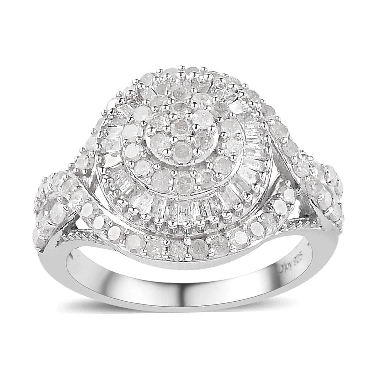 Diamond Ring in Platinum Over Sterling Silver (Size 10.0) 1.00 ctw