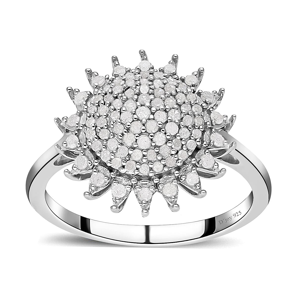 Diamond Sunburst Ring in Platinum Over Sterling Silver (Size 10.0) 0.50 ctw