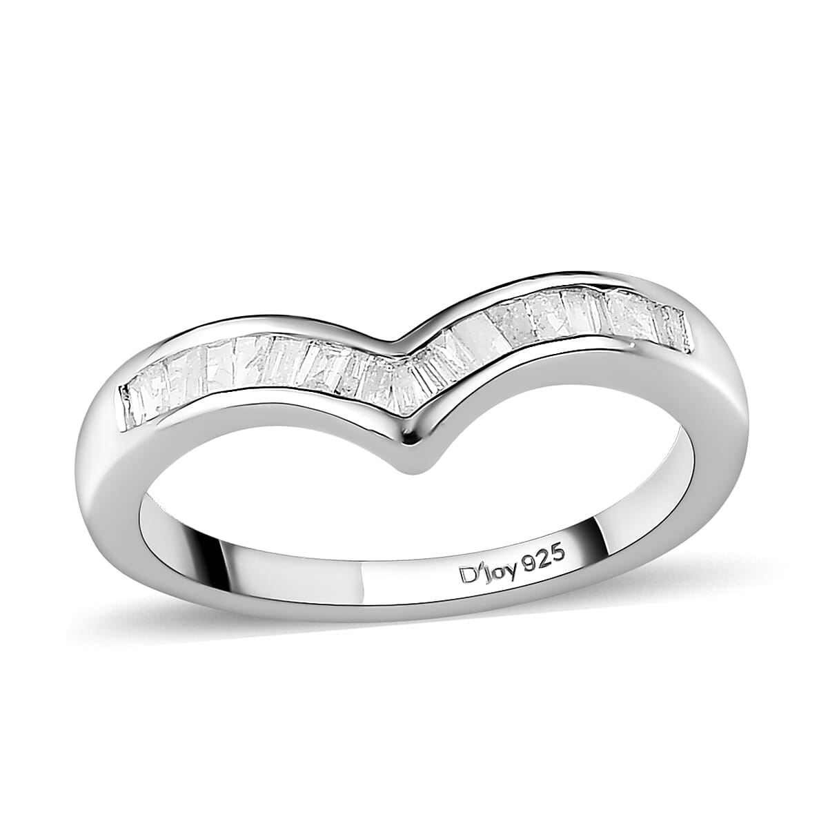Inspired by a wishbone, this diamond ring signifies luck and hope. This diamond sterling silver wishbone ring features a metal designed in a wishbone pattern. The baguette-shaped diamonds on the front side of the band give a beautiful look. Each sparkling diamond is held perfectly in a channel setting, giving a clean look.