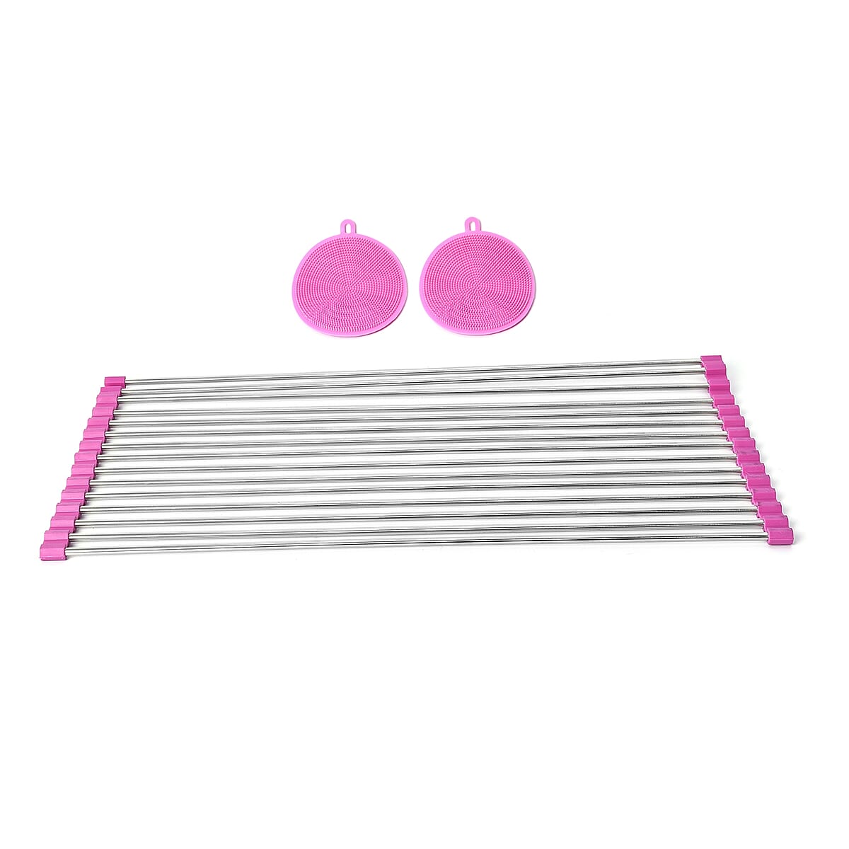 Dish Drying Rack 2 Silicone Sponges- Purple Edition