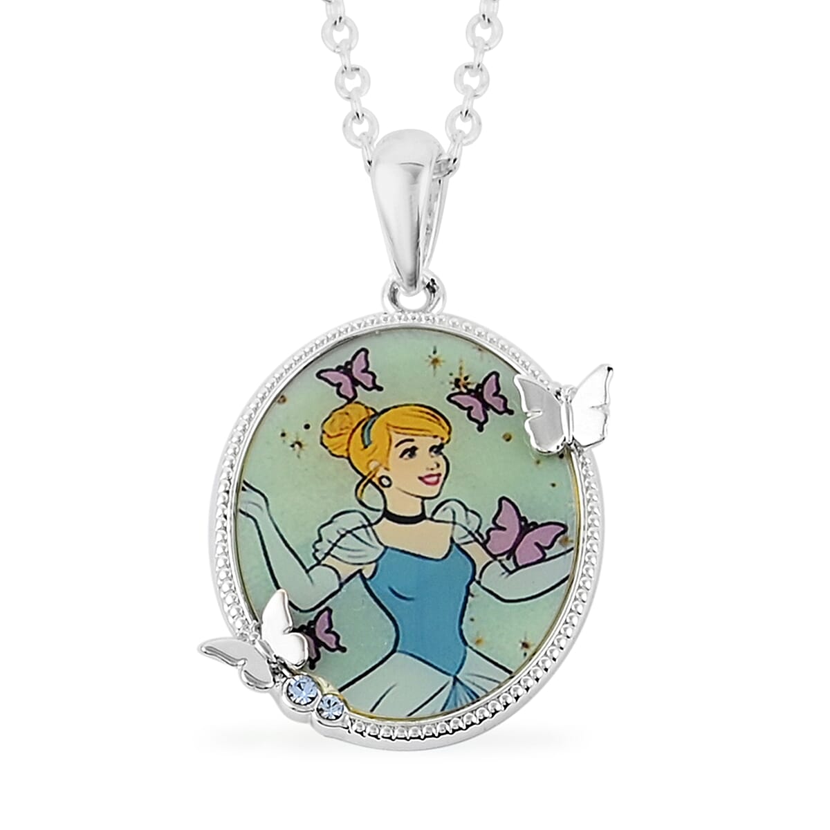 Disney Cinderella with Butterflies and Sapphire Austrian Crystal Necklace 18 Inches in Silvertone