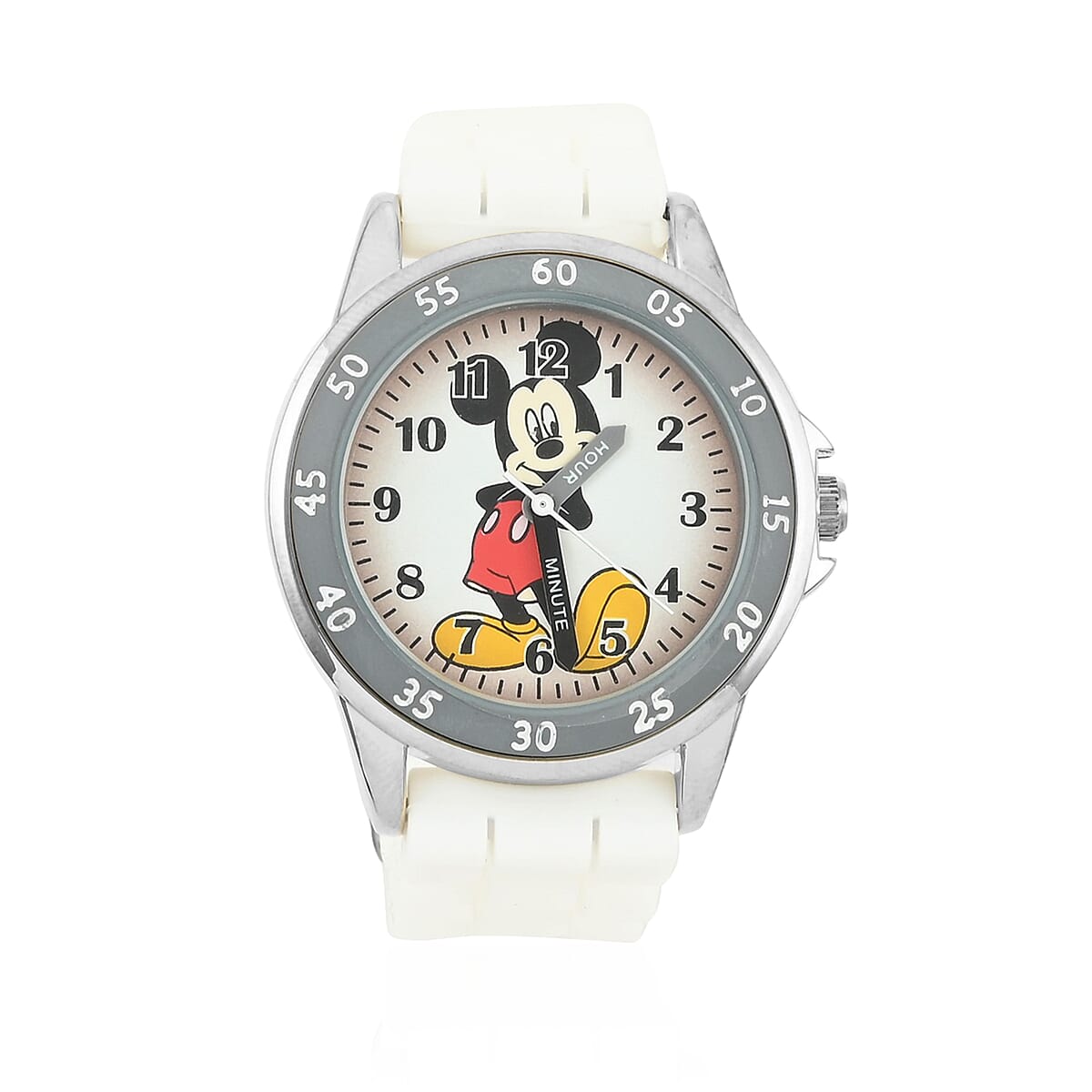 DISNEY Mickey Mouse Hour and Minute Learning Japanes Movement Watch with White Silicone Strap and Stainless Steel Back (34mm)