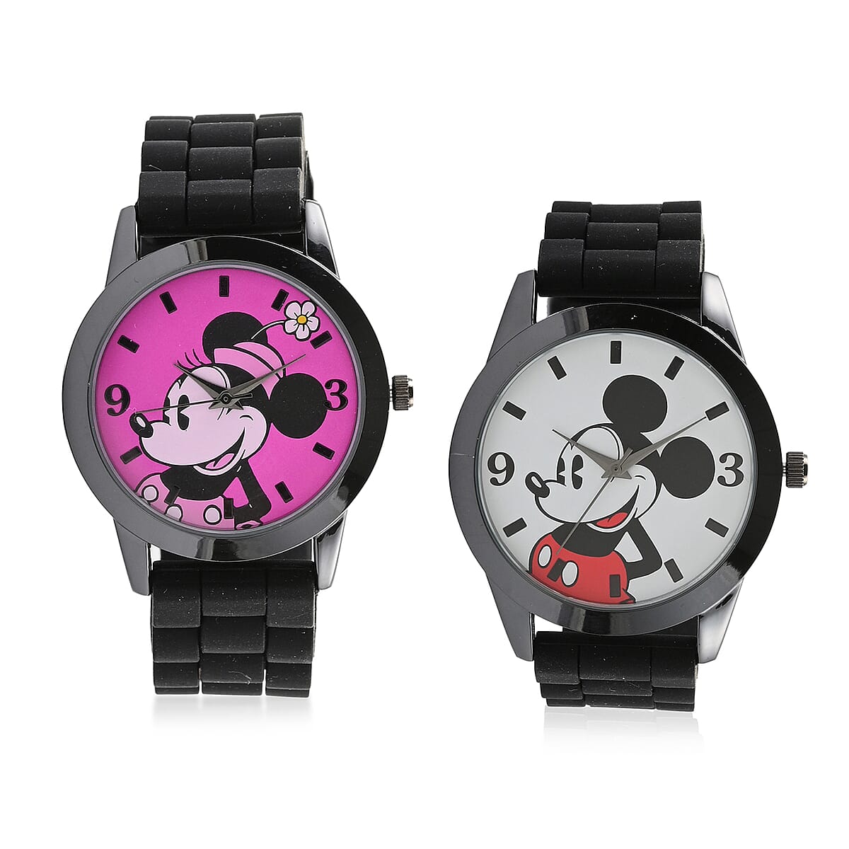 DISNEY Set of 2 Japanese Movement Mickey Mouse Black Silicone Strap His & Hers Gift Set Watch (35mm) (45mm)