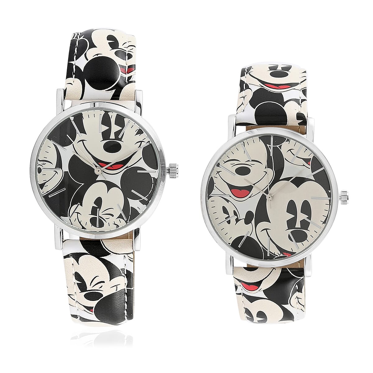 DISNEY Set of 2 Japanese Movement Mickey Mouse Face Pattern Vegan Leather Strap His & Hers Gift Set Watch (35mm) (40mm)