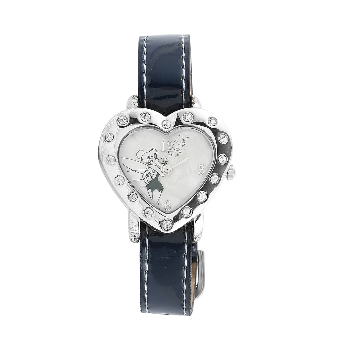 Disney Tinkerbell Crystal Heart Japanese Movement Studded Heart Watch with Navy Strap (30mm)