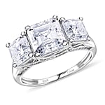 D'Joy Asscher Cut Moissanite Trinity Ring in Rhodium Over Sterling Silver 5.90 ctw (Size 10.0)