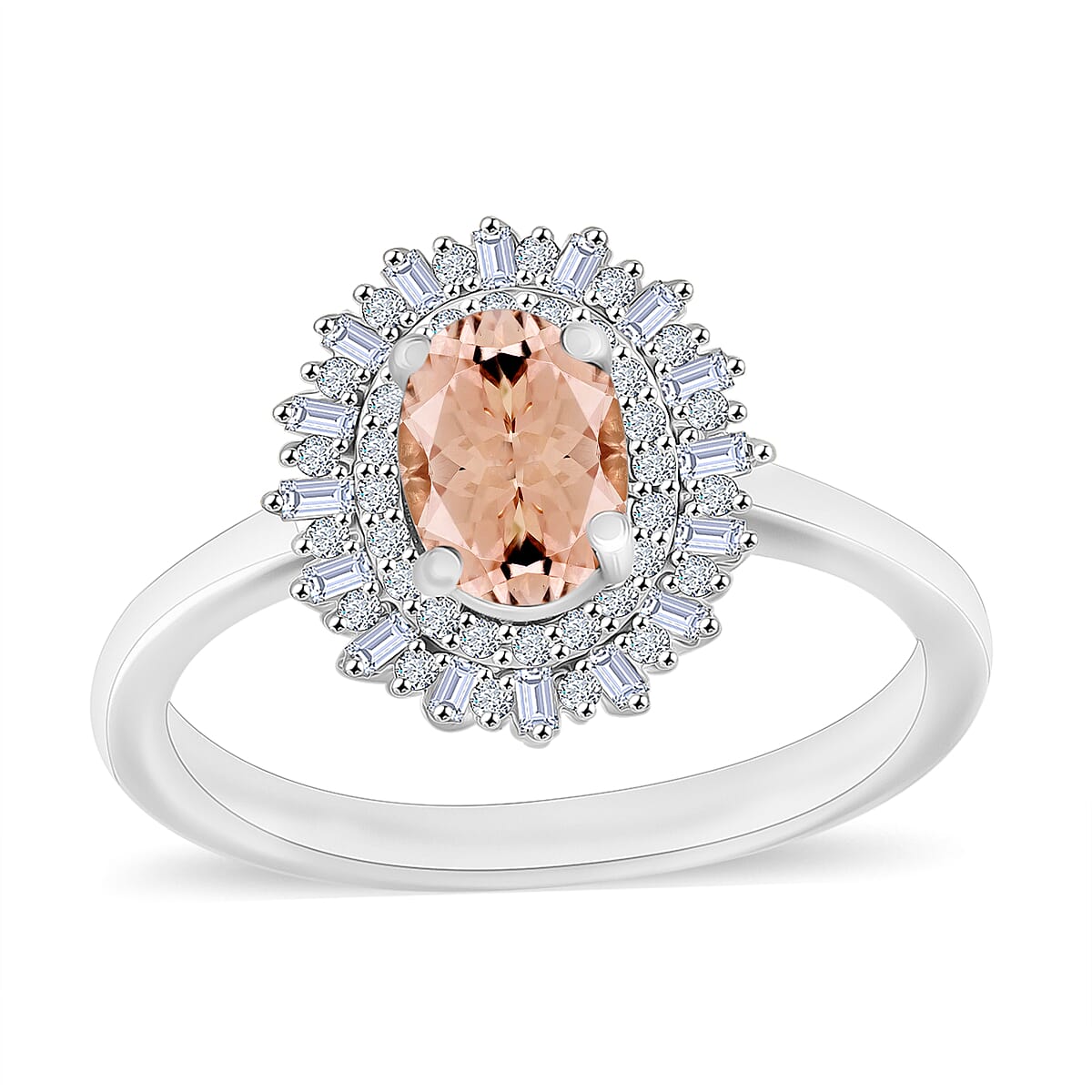 D'Joy Marropino Morganite, Diamond Ring in Rhodium Over Sterling Silver 1.13 ctw (Size 5.0) (Del. In 10-12 Days)