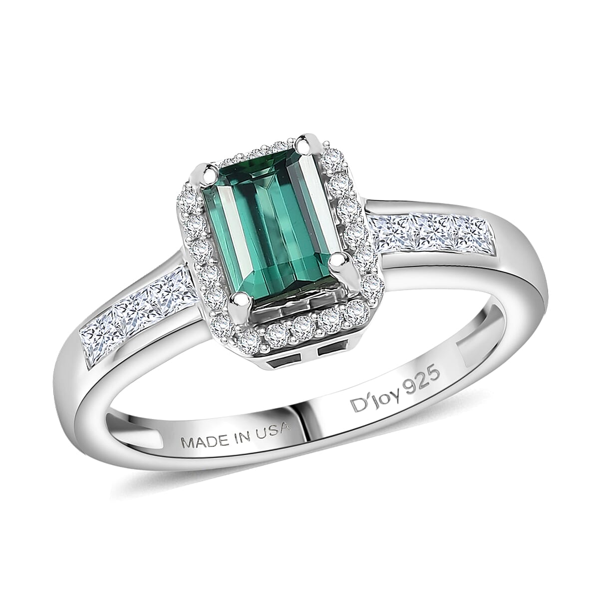 D'Joy Pirineu Lagoon Tourmaline, Moissanite Ring in Rhodium Over Sterling Silver 1.30 ctw (Size 7.0)