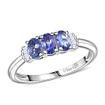 D'Joy Tanzanite, Diamond Trinity Ring in Rhodium Over Sterling Silver 0.75 ctw (Size 7.0)