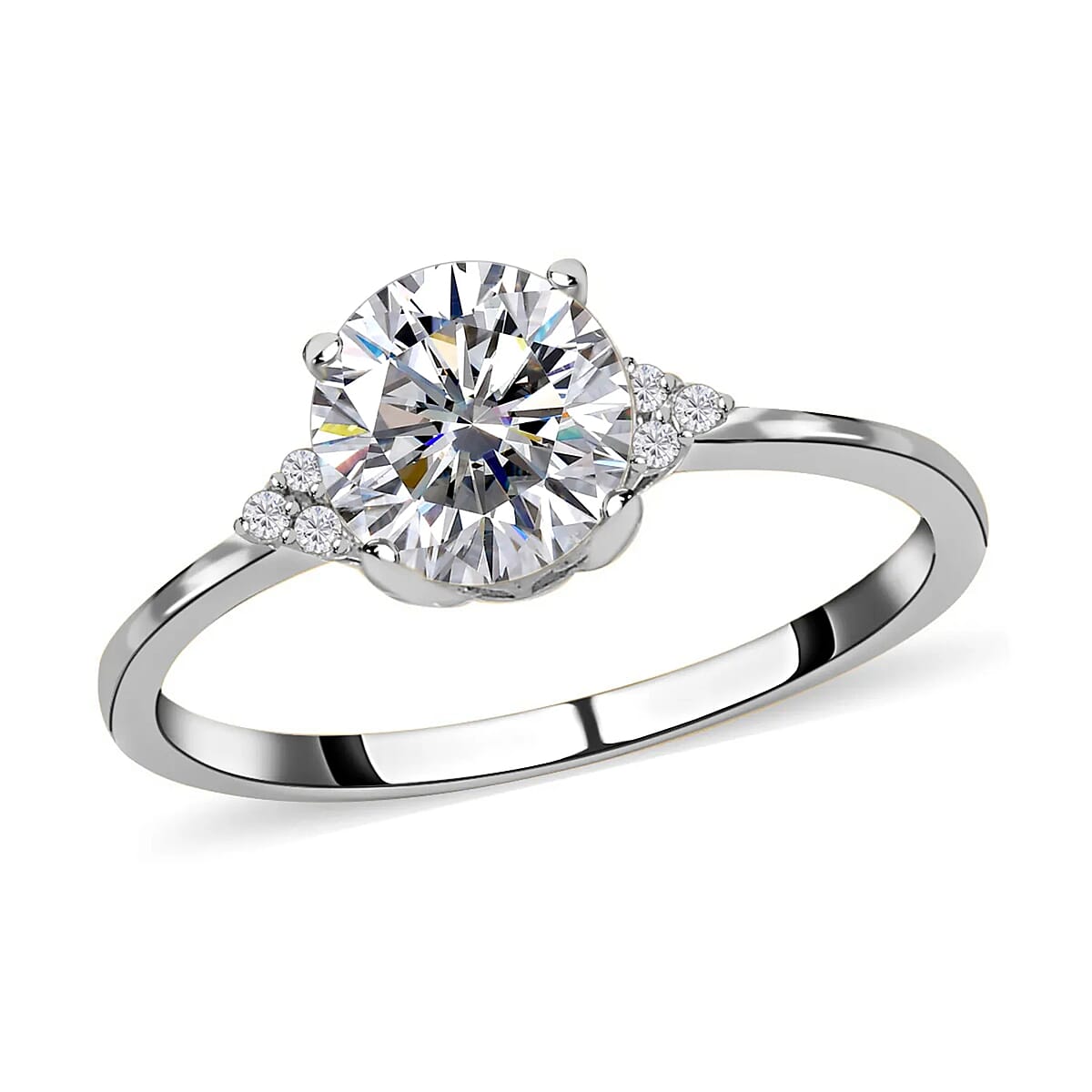 D'Joy 100 Facets Moissanite 1.85 ctw Ring in Rhodium Over Sterling Silver, Engagement Ring For Women (Size 6.0)
