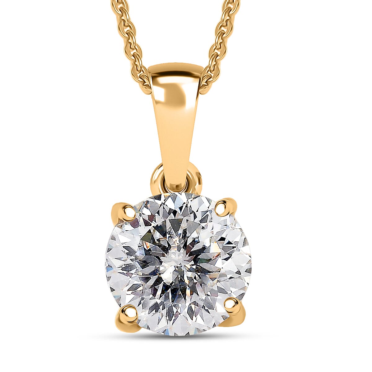 D'Joy 129 Facet Strontium Titanate 3.00 ctw Classic Solitaire Pendant Necklace in 18K Vermeil Yellow Gold Over Sterling Silver 20 Inches