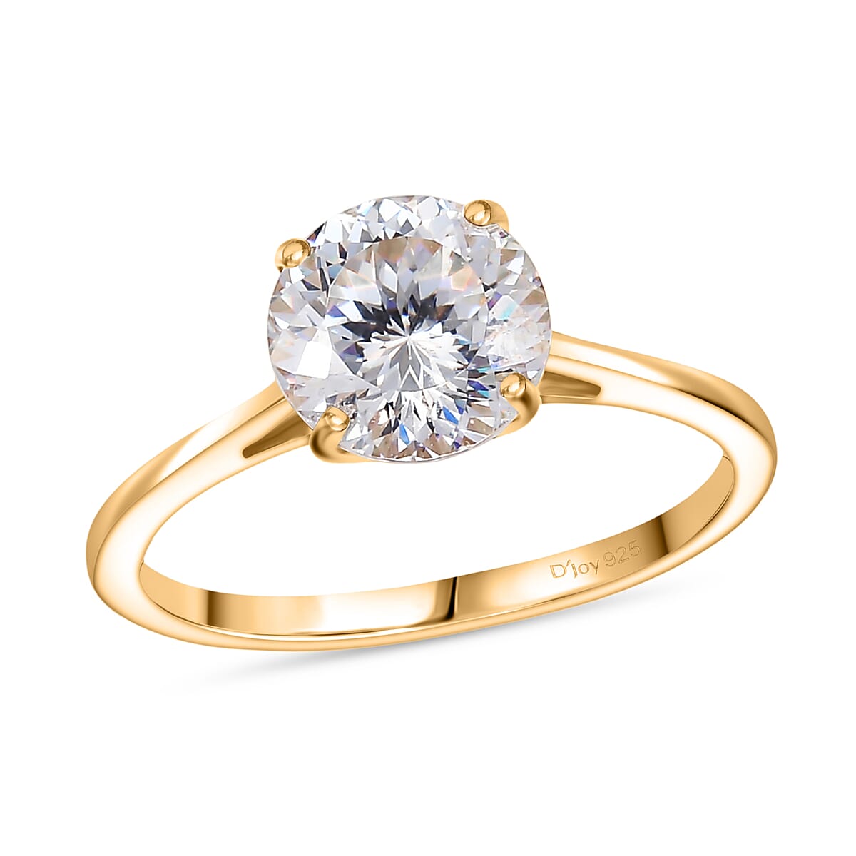 D'Joy 129 Facet Strontium Titanate 3.00 ctw Classic Solitaire Ring in 18K Vermeil Yellow Gold Over Sterling Silver (Size 6.0)