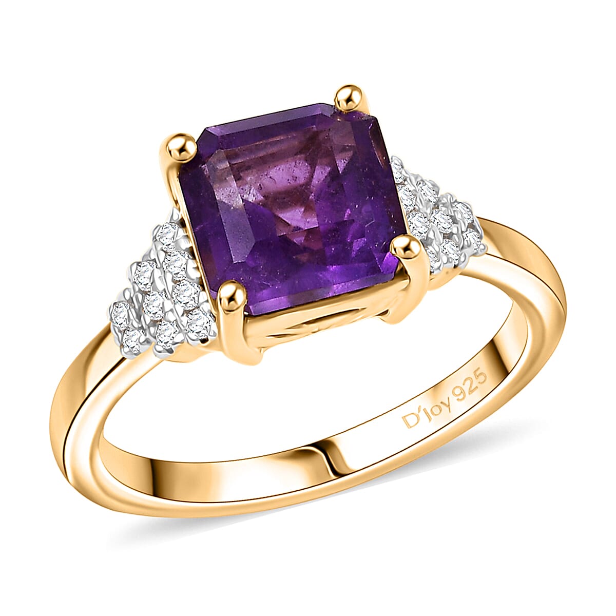 D'Joy AAA African Amethyst and White Zircon 3.10 ctw Regal Radiance Ring in 18K Vermeil Yellow Gold Over Sterling Silver (Size 8.0)