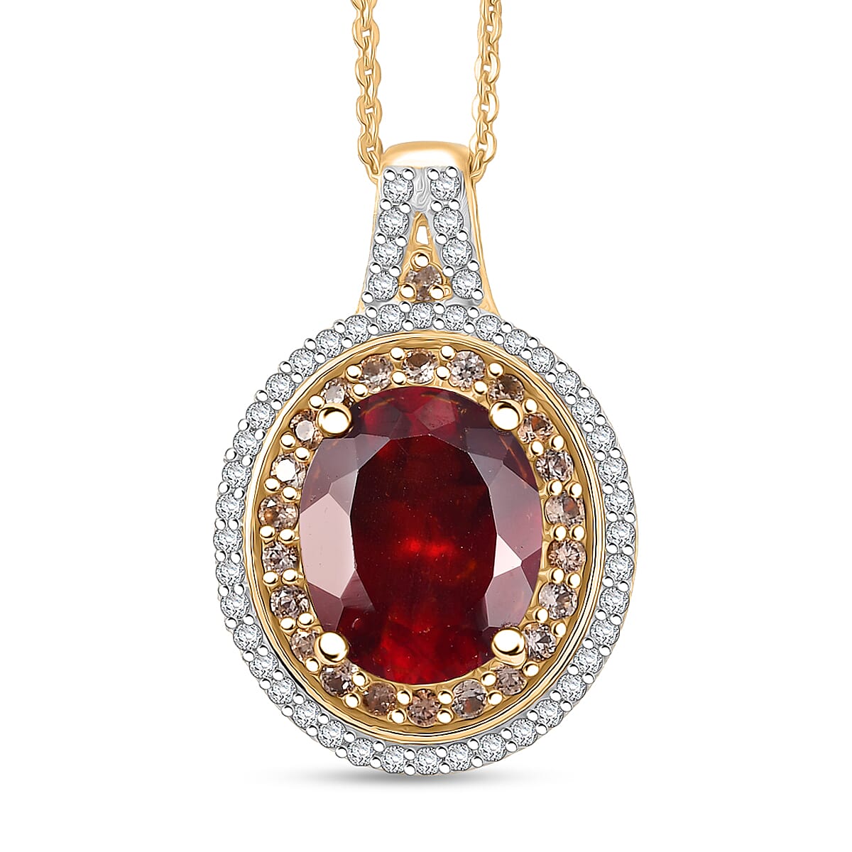 D'Joy AAA Ceylon Honey Garnet, Champagne and White Zircon Pendant Necklace in 18K Vermeil YG Over Sterling Silver 5.00 ctw (20 Inches)
