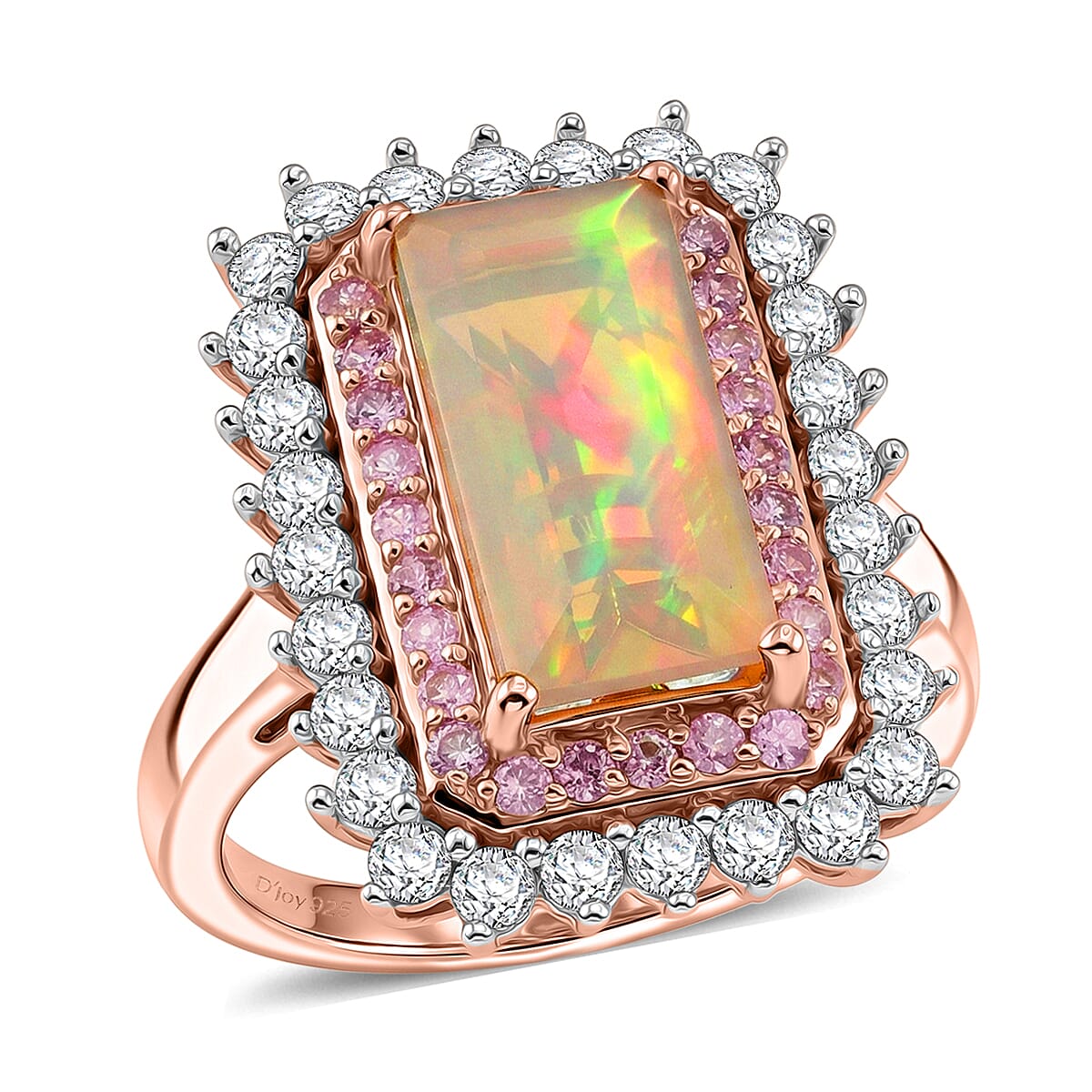D'Joy AAA Ethiopian Welo Opal and Multi Gemstone 4.00 ctw Antique Mirror Ring in 18K Vermeil Rose Gold Over Sterling Silver (Size 8.0)