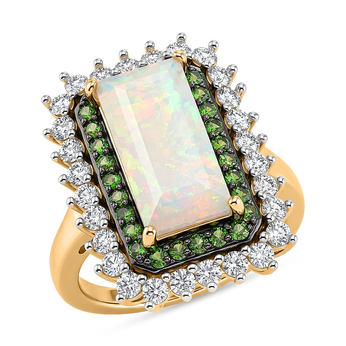 D'Joy AAA Ethiopian Welo Opal, Multi Gemstone Ring in 18K Vermeil YG Over Sterling Silver (Size 10.0) 4.00 ctw