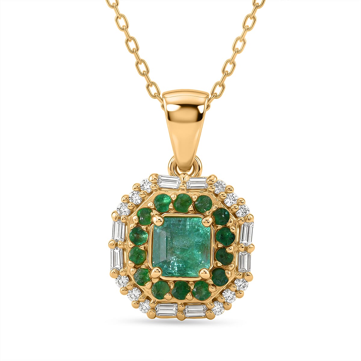 D'Joy AAA Kagem Zambian Emerald and Moissanite 1.70 ctw Royal Blossom Pendant Necklace in 18K Vermeil Yellow Gold Over Sterling Silver 20 Inches