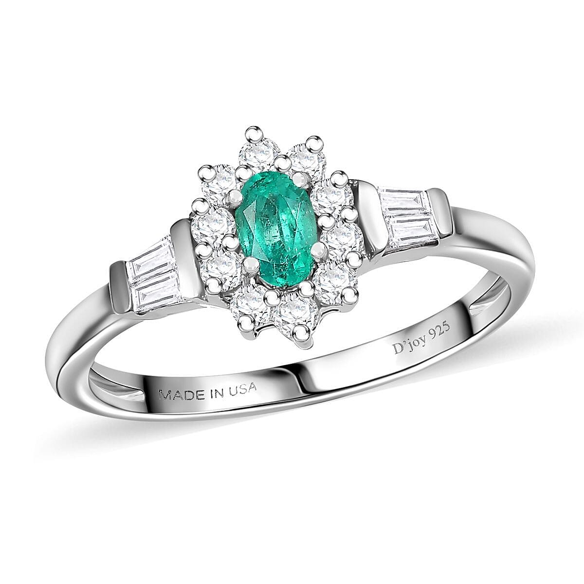 D'Joy AAA Kagem Zambian Emerald and White Zircon 0.70 ctw Regal Blossom Ring in Rhodium Over Sterling Silver (Size 8.0)