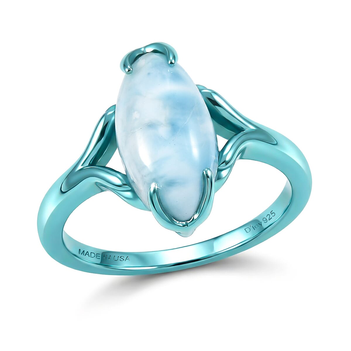 D'Joy AAA Larimar 1.65 ctw Tidal Flame Ring in Blue E-Coat Sterling Silver (Size 7.0)