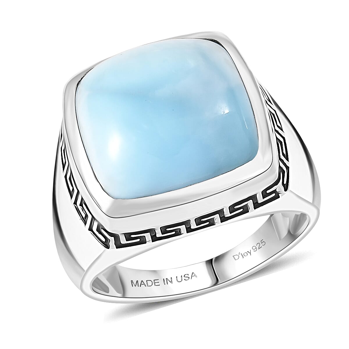 D'Joy AAA Larimar 13.50 ctw Men's Ring in Rhodium Over Sterling Silver (Size 13.0)