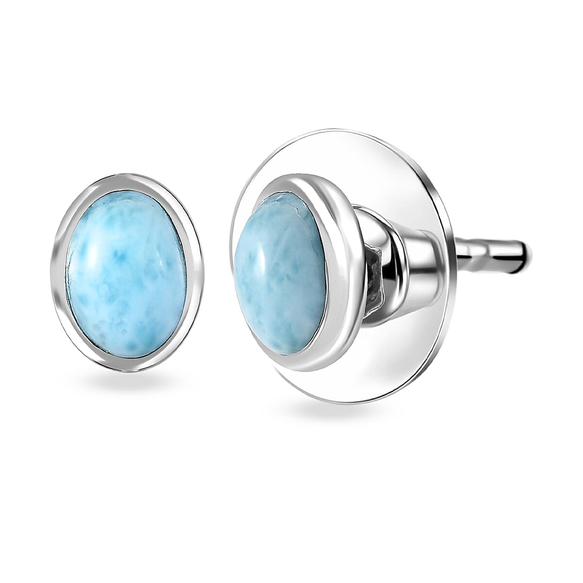 Elevate your collection with these D’Joy AAA larimar earrings in 925 sterling silver. These elegant stud earrings for women feature serene larimar hues with luminous rhodium finish. Designed for everyday sophistication, they add soft color and refined shine.
