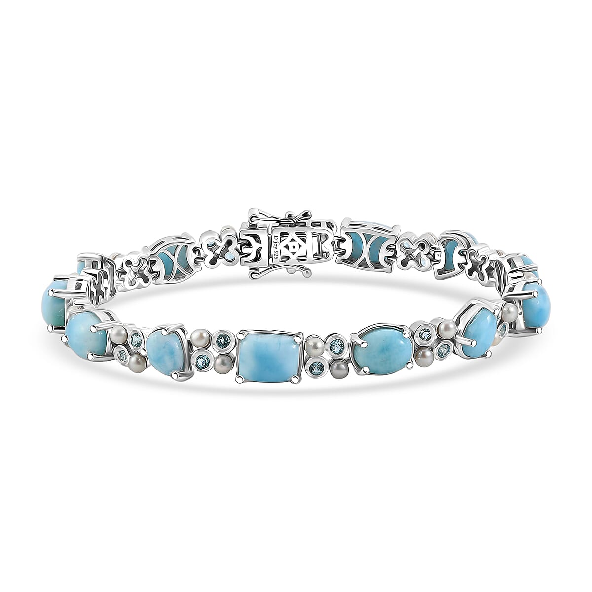 D'Joy AAA Larimar and Multi Gemstone 18.10 ctw Bracelet in Rhodium Over Sterling Silver (7.25 In)