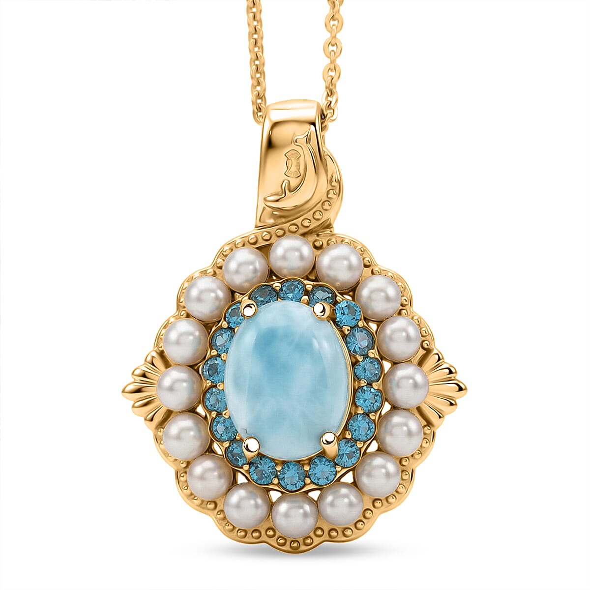 D'Joy AAA Larimar and Multi Gemstone 2.50 ctw Pendant Necklace in 18K Vermeil Yellow Gold Sterling Silver 20 Inches