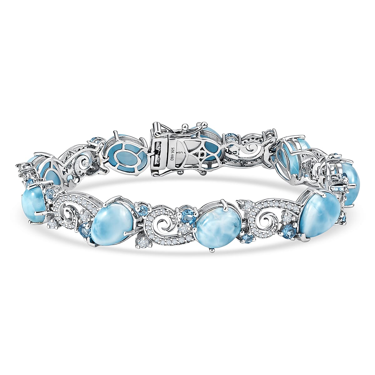 D'Joy AAA Larimar and Multi Gemstone 23.20 ctw Tidal Symphony Bracelet in Rhodium Over Sterling Silver (6.50 In)