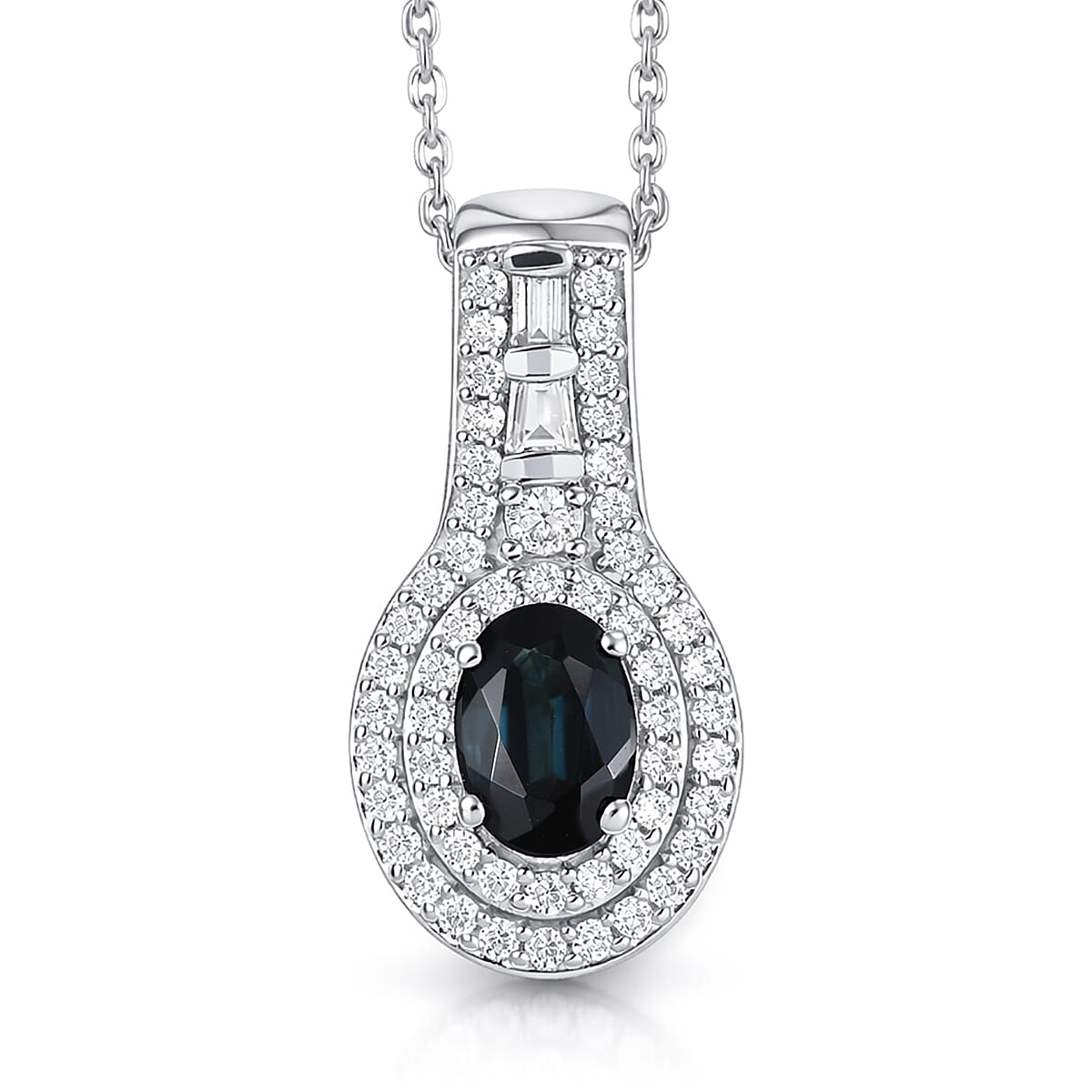 D'Joy AAA Monte Belo Indicolite and Moissanite 1.10 ctw Pendant Necklace in Rhodium Over Sterling Silver 20 Inches