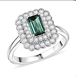 D'Joy AAA Pirineu Lagoon Tourmaline, Moissanite Ring in Rhodium Over Sterling Silver (Size 7.0) 1.75 ctw