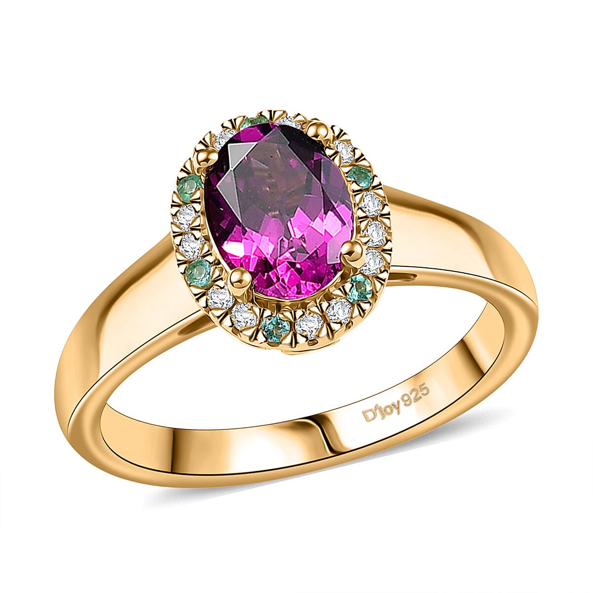 D'Joy AAA Radiant Ember Garnet, AAA Paraiba Tourmaline and Diamond 1.80 ctw Dewdrop Ring in 18K Vermeil Yellow Gold Over Sterling Silver