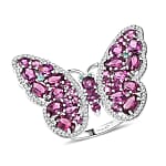D'Joy AAA Radiant Ember Garnet, Multi Gemstone Flamecrest Butterfly Ring in Rhodium Over Sterling Silver 6.20 ctw (Size 5.0)